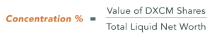 - For example, let’s say you have $600,000 in DXCM shares and a liquid net worth of $2 million. Your Dexcom concentration is 30%, which is considered high.